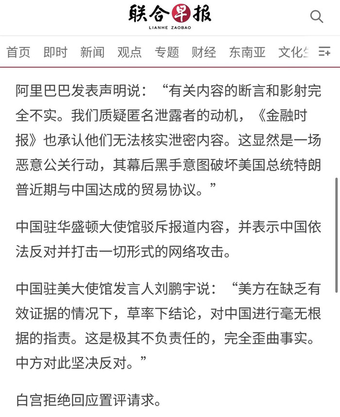 11月14日,阿里秘密启动千问项目,推出对标ChatGPT的同名AI助手。消息仅隔一天,《金融时报》即报道称,美国白宫宣称阿里巴巴协助军方针对美国行动并提供数据支持,危及美国安全。